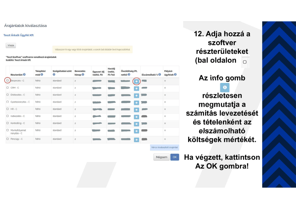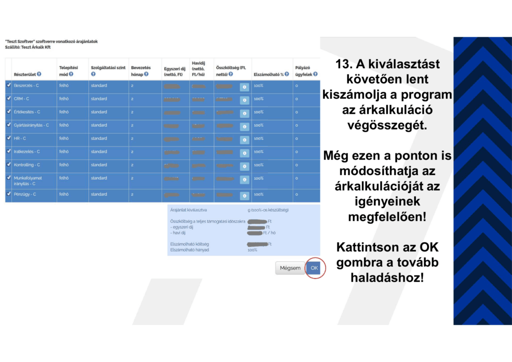 Az ügyfelek itt láthatják, milyen árakon érhetők el a kiválasztott megoldások.