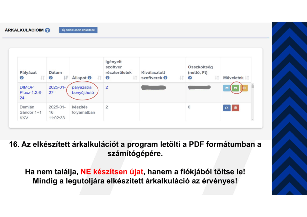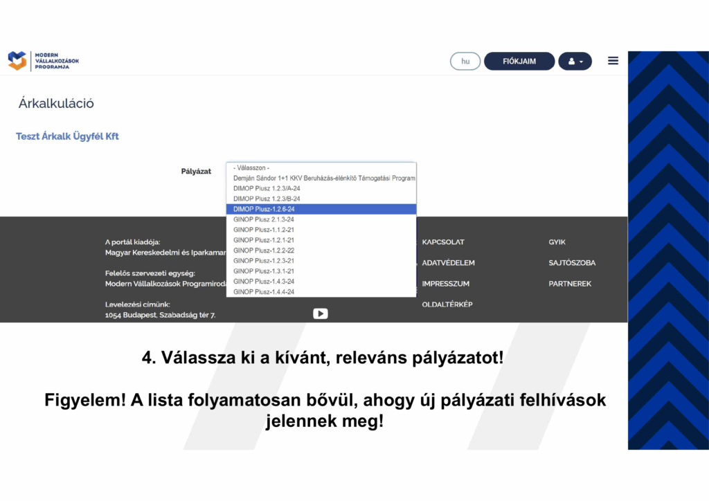 Részletes útmutató árkalkuláció készítéséhez a pályázati felületen