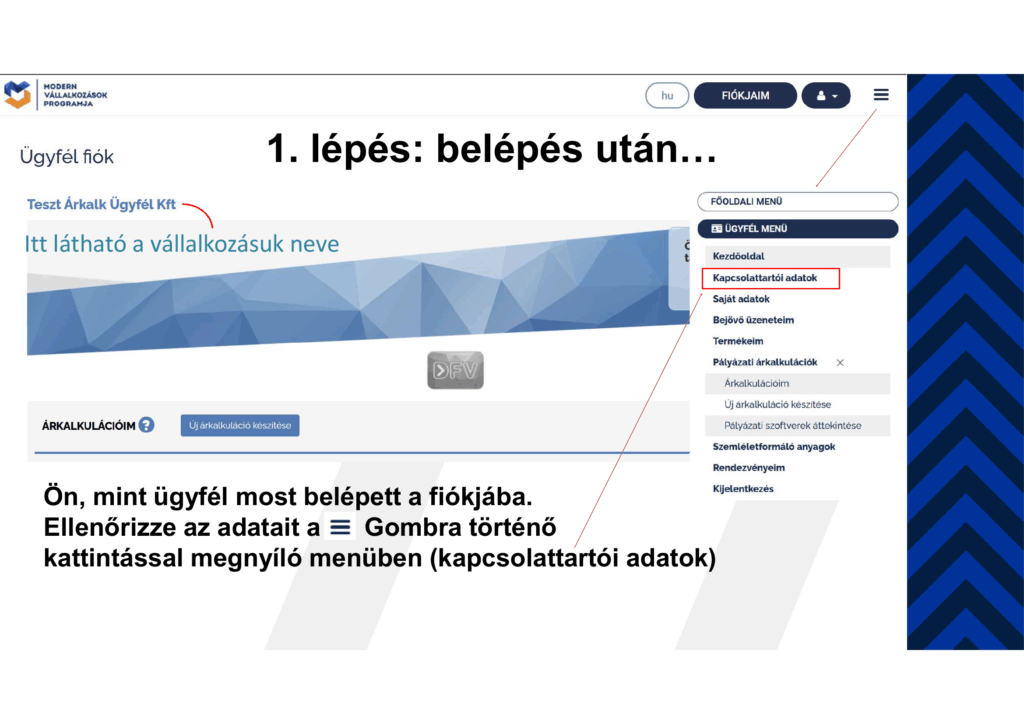 Az ügyfelek első lépése mindig a regisztráció és a belépés a rendszerbe. Itt fontos, hogy minden vállalkozási adat pontosan szerepeljen, mert a hibás információk később gondot okozhatnak a pályázatban. A felület egyértelműen vezeti végig a felhasználót a szükséges mezők kitöltésén, ugyanakkor sokan hajlamosak figyelmen kívül hagyni az apró részleteket. Mi azt tanácsoljuk, hogy minden adat ellenőrzése után mentsék el az űrlapot, így elkerülhetőek a későbbi módosítások. A regisztráció sikeres elvégzése után megkezdődhet az árkalkulációs folyamat.
